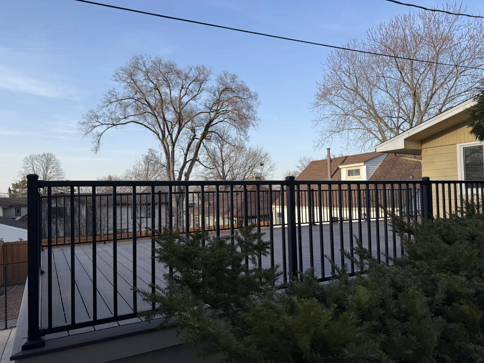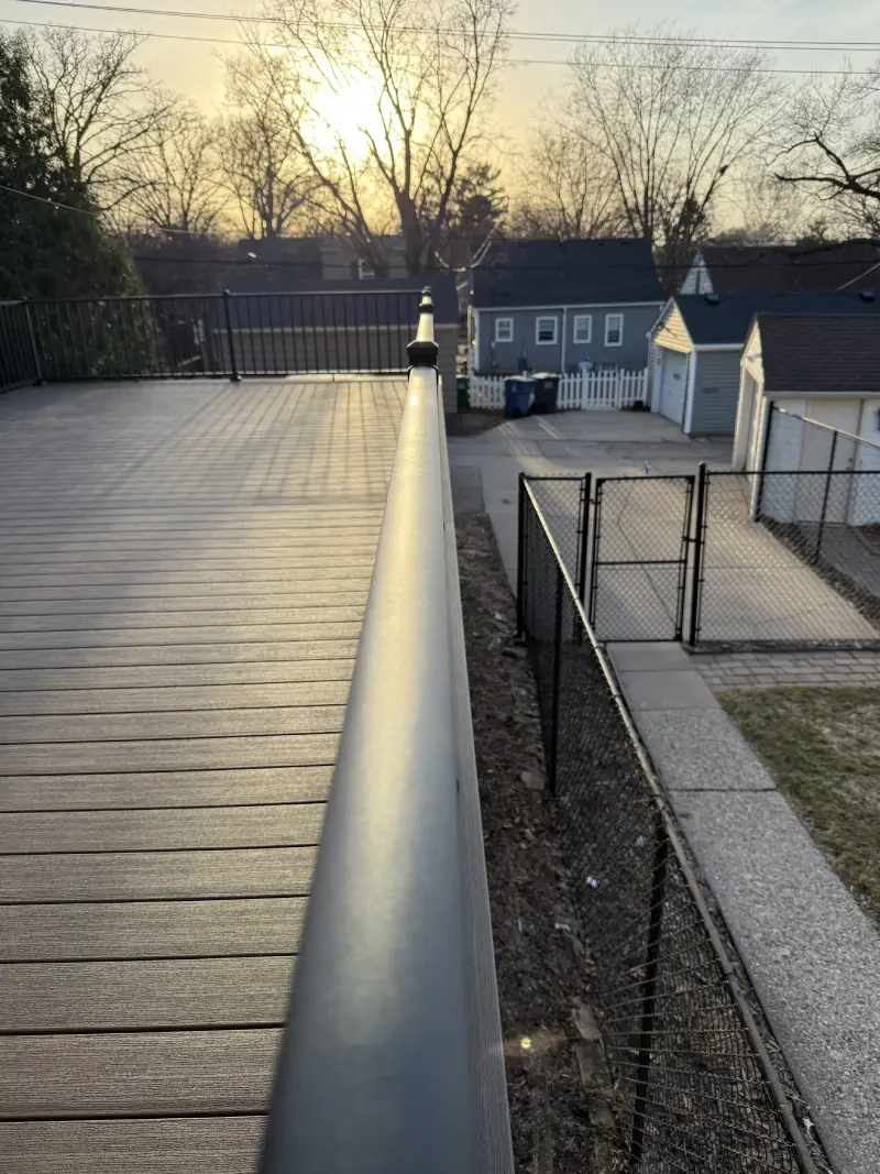 By the end of the project, the home had a large, usable deck where there used to be an underused garage roof area. The composite surface gives the space a clean finish, the railings keep it safe and open, and the layout gives the homeowner a much better place to spend time outside.