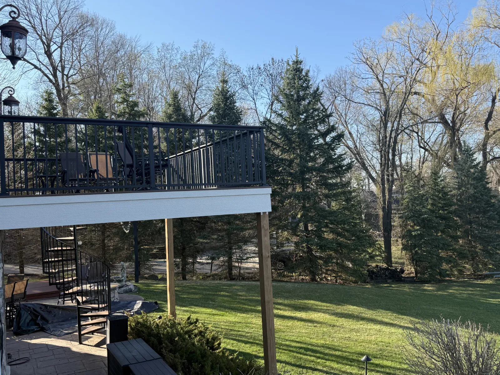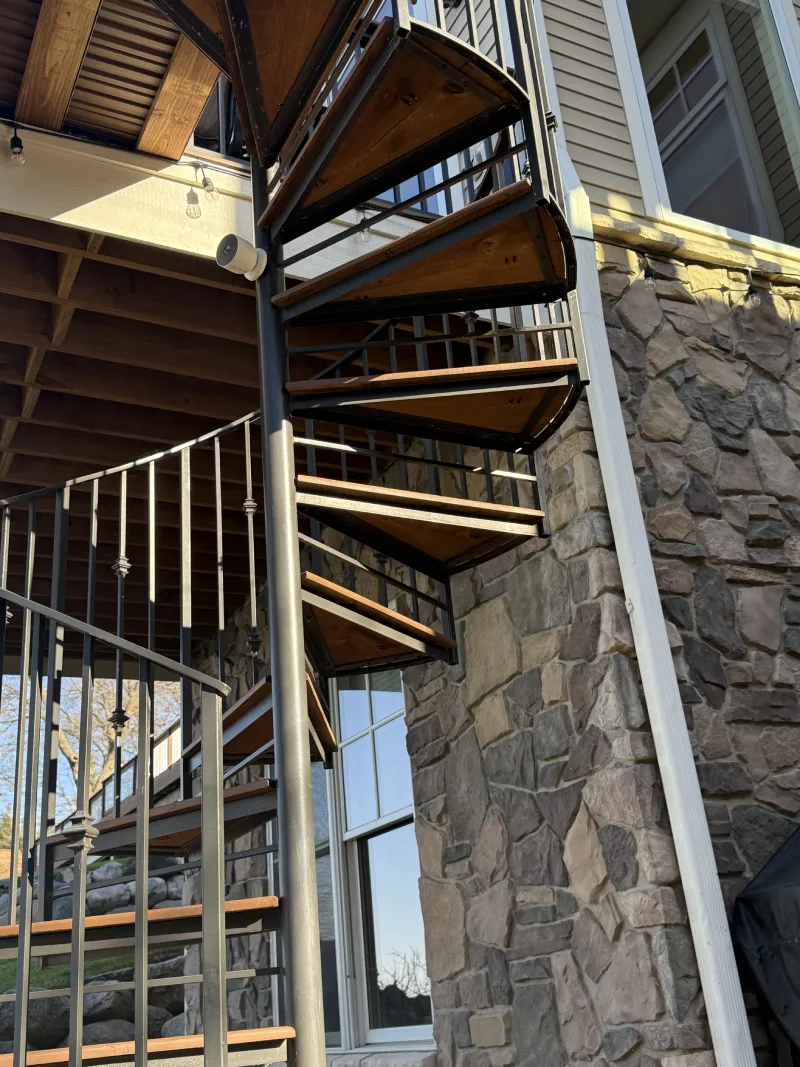 That makes it a strong fit for a project like this where the deck sits elevated and the goal is to improve access without eating up too much of the yard or overwhelming the back of the house. It is functional, compact, and visually sharp.